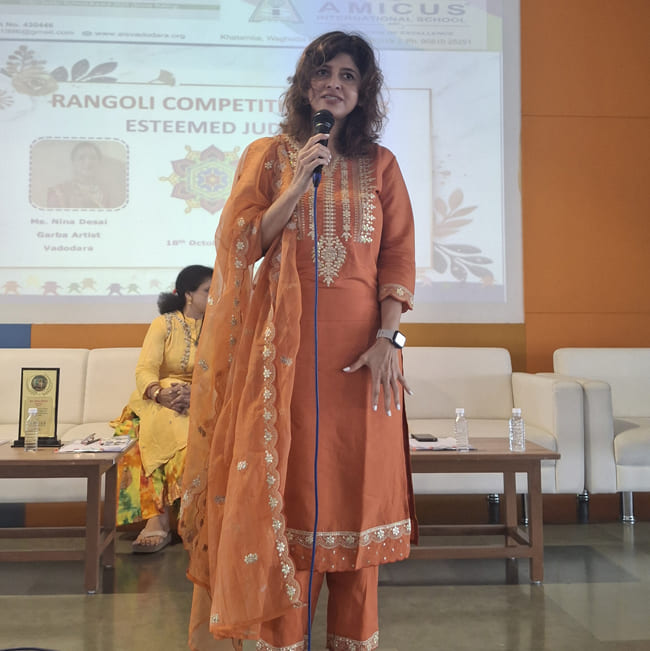 | 18/10/2025 | Ms. Nina Desai | Garba Artist, Vadodara | Rangoli Competition-2025 | |